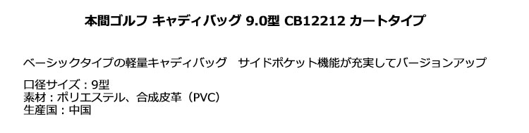 【FG】本間ゴルフ HONMA CB12212 キャディバッグ 9型 カート キャディーバッグ メーカー希望小売価格はメーカーカタログに基づいて掲載しています。 【G2015】[ ゴルフ GOLF ゴルフ用品 ゴルフグッズ ][あす楽]【あす楽_土曜営業】 商品価格:13,000円 レビュー件数:0件 レビュー平均:0(5点満点) 楽天で購入 トップページへ