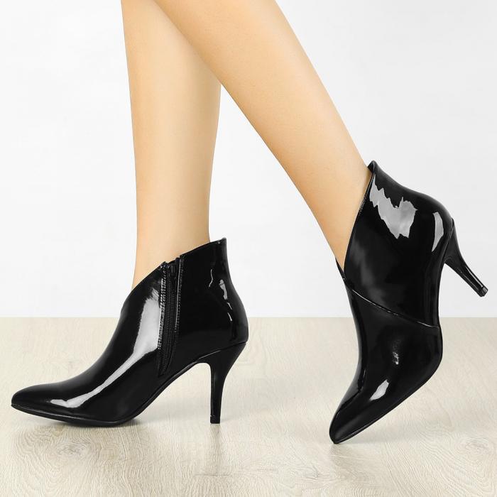 【属性5】ヒールの高さ:8 cm、シャフトの高さ:10.5 cm【商品説明】スティレットヒール、内側のファスナーで留めるV字型のシェイプで、スキニージーンズとスカートを組み合わせおすすめます。
