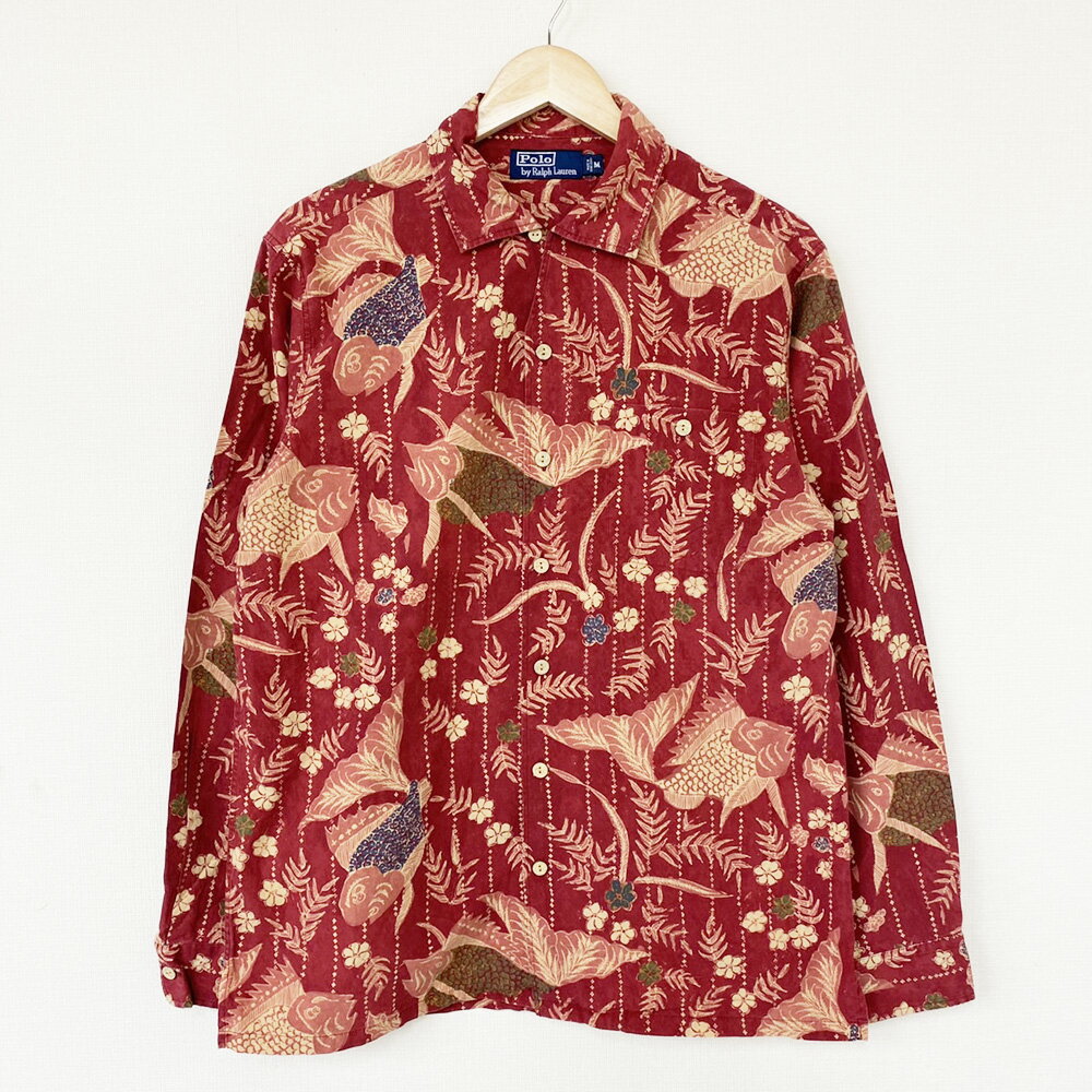 ポロ ラルフローレン Polo by Ralph Lauren 総柄 ロングスリーブ シャツ 魚 花 植物柄 長袖 サイズ:M エンジ系【古着】 古着 【中古】 中古 mellow 【あす楽対応】【古着屋mellow楽天市場店】