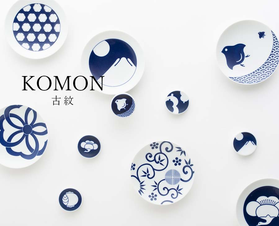 日本の伝統紋様をモダンにアレンジした「KOMON」は、豆皿、取皿、大皿、箸置などバリエーションがあります。