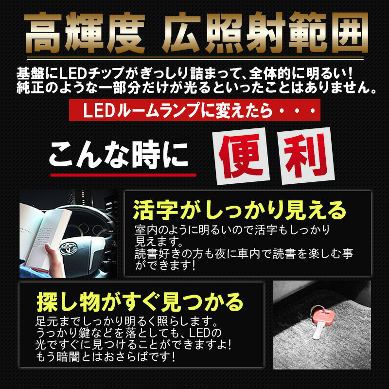 ルームランプでは数少ないLED3chip SMD、5050 LEDチップを使用! 高輝度LEDカスタム仕様で純白な室内を演出できます。