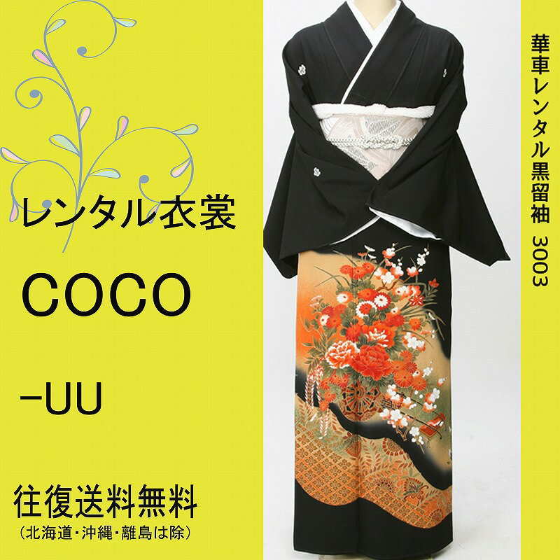 【レンタル】華車レンタル黒留袖 オススメ 2 L寸 LL寸高級留袖 往復送料無料 結婚式列席 親戚留袖 母親お留袖 着物結婚式 黒留袖 貸衣装 とめそで 複数割引 草履バッグ 小物も 大きいサイズ fy16REN07