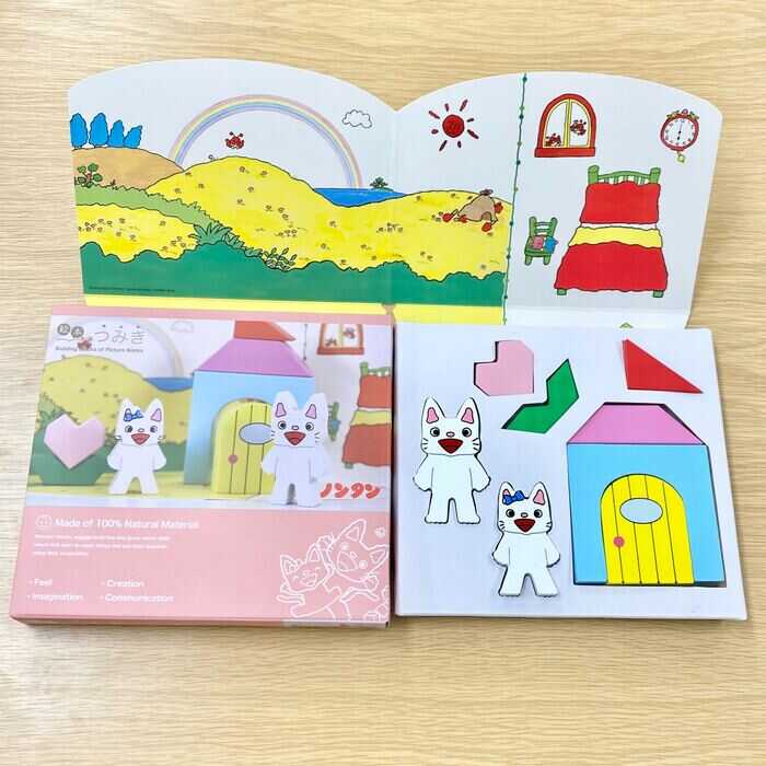ごっこ遊び、バランス遊び、 絵本のページを真似ての並べ遊び、 絵本の世界を飛び出し自ら創造する創作遊びなど、 絵本の特徴をいかした知育遊びができます。